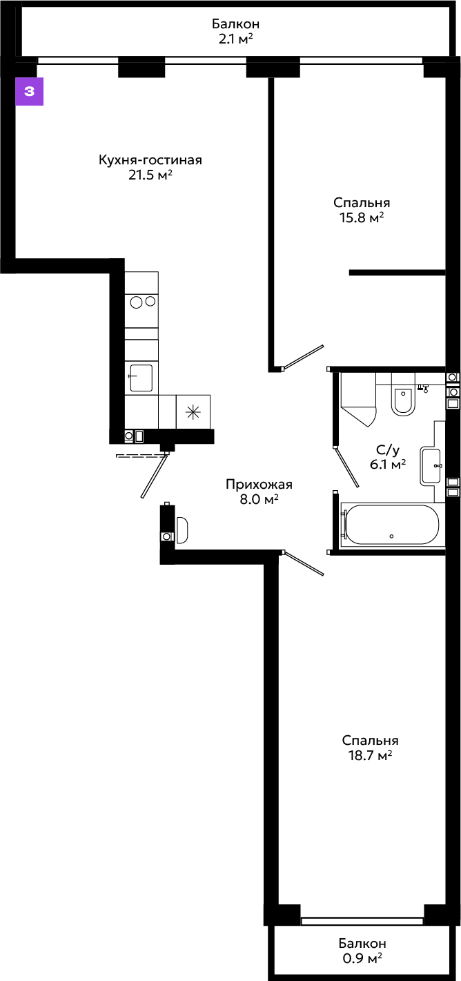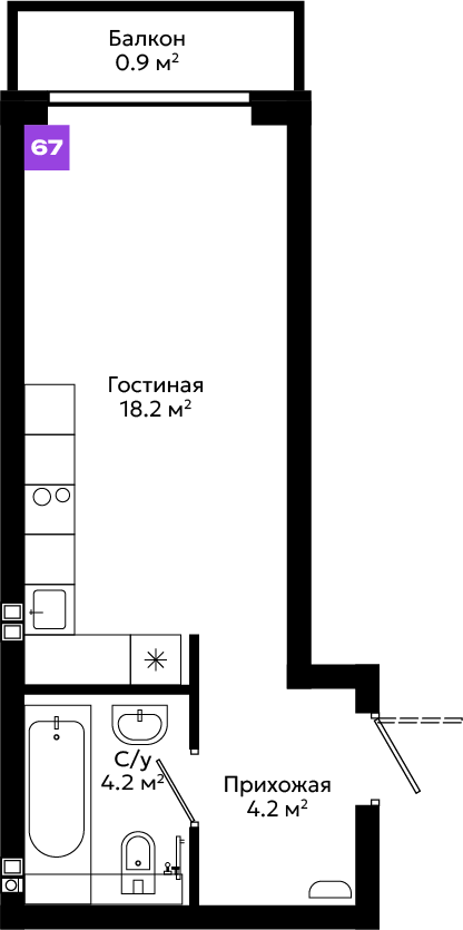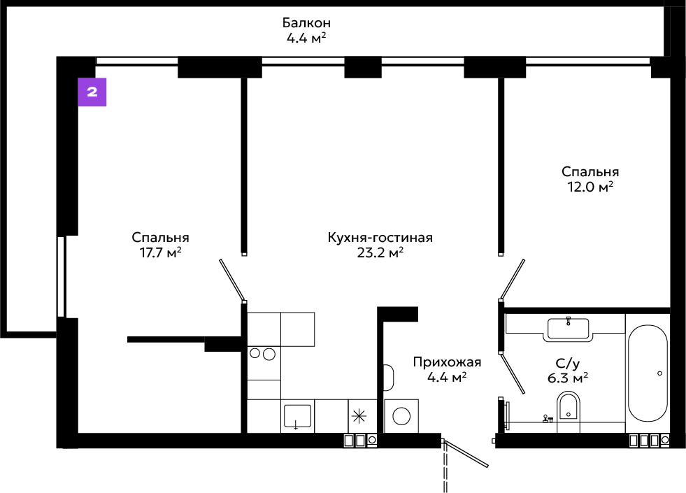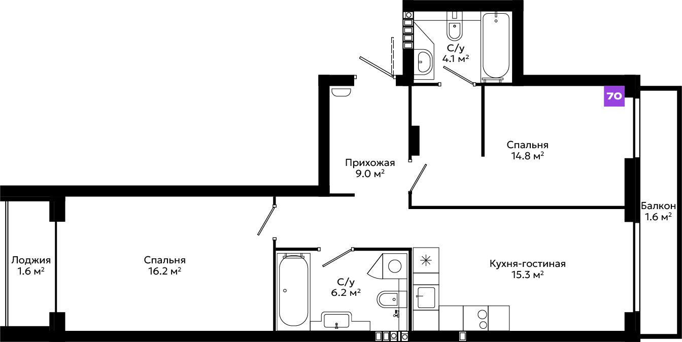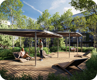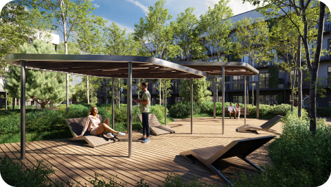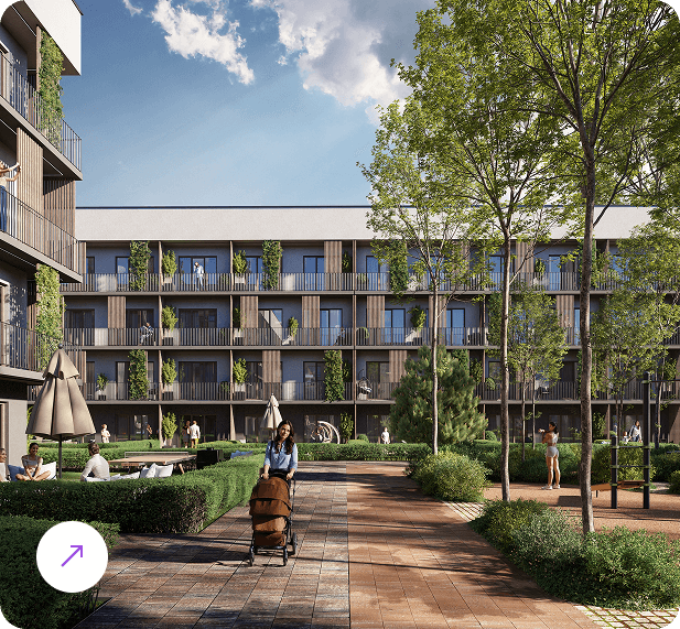 Большой выбор планировочных решений, от эргономичных студий до просторных квартир с мастер-спальней и собственными террасами.