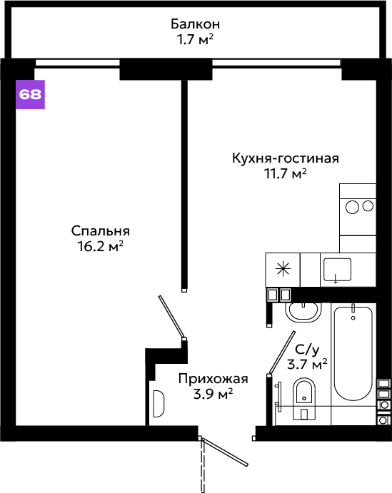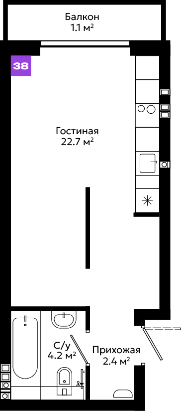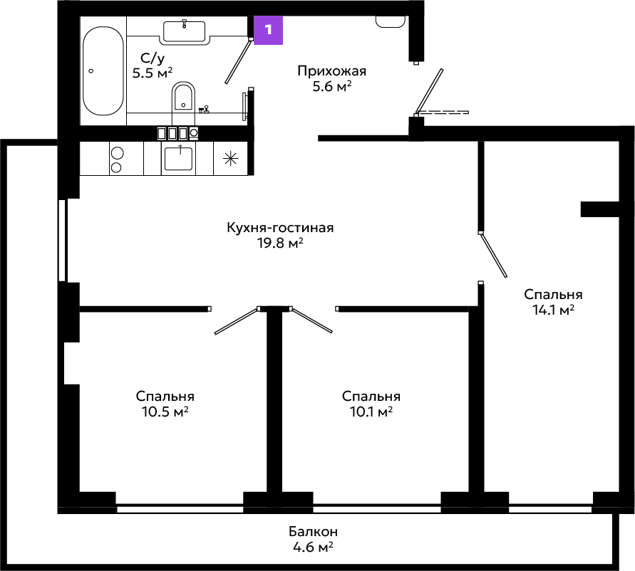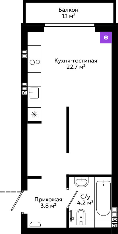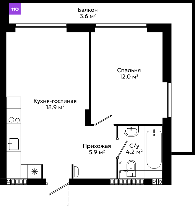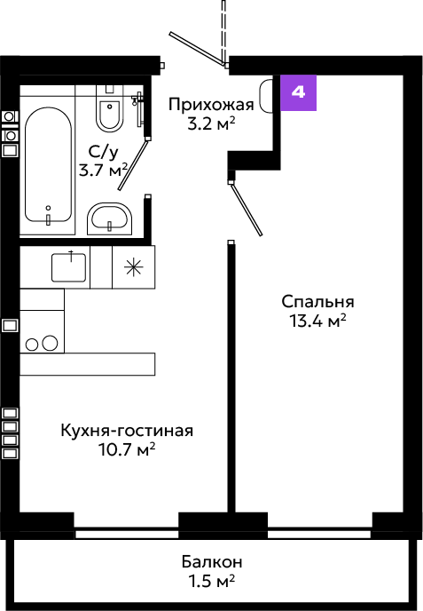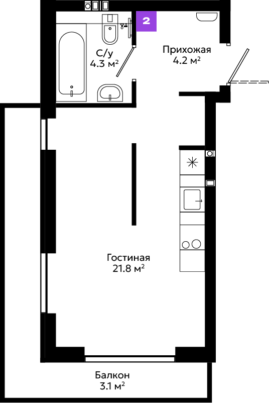 Большой выбор планировочных решений, от эргономичных студий до просторных квартир с мастер-спальней и собственными террасами.